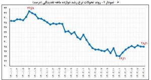 پایه پولی در آذر سال ۱۴۰۳ رقم ۱۲۱۶۴٫۷ هزار میلیارد ریال را به ثبت رساند. بر این اساس، رشد ۱۲ ماهه پایه پولی در آذر ۱۴۰۳ به رقم ۲۰٫۰ درصد رسید که در مقایسه با رقم مشابه در آذر سال ۱۴۰۲ (۳۳٫۱ درصد) به میزان ۱۳٫۱ واحد درصد کاهش نشان می دهد. همچنین پایه پولی در آذر ماه سال ۱۴۰۳ نسبت به پایان سال گذشته رشدی معادل ۱۱٫۴ درصد را تجربه کرد.