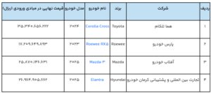همه قیمتهای مندرج در جدول، قیمت در مبادی ورودی کشور بوده و هزینههای بعد از ترخیص شامل بیمه شخص ثالث، شمارهگذاری، مالیات بر ارزش افزوده، عوارض قانونی، اسقاط خودروی فرسوده، کرایه حمل و… به قیمتهای مذکور اضافه میشود.