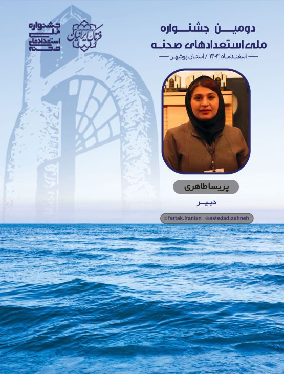 به گزارش قاب خبر، پریسا طاهری بانوی شاهنامه خوان اهل مسجدسلیمان، به عنوان دبیر دومین جشنواره ملی استعدادهای صحنه در استان بوشهر منصوب گردید.