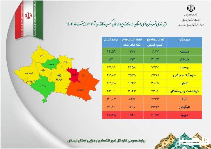 رتبه بندی شهرستانهای لرستان در تبدیل مجوزهای کاغذی تا ۱۷ اردیبهشت